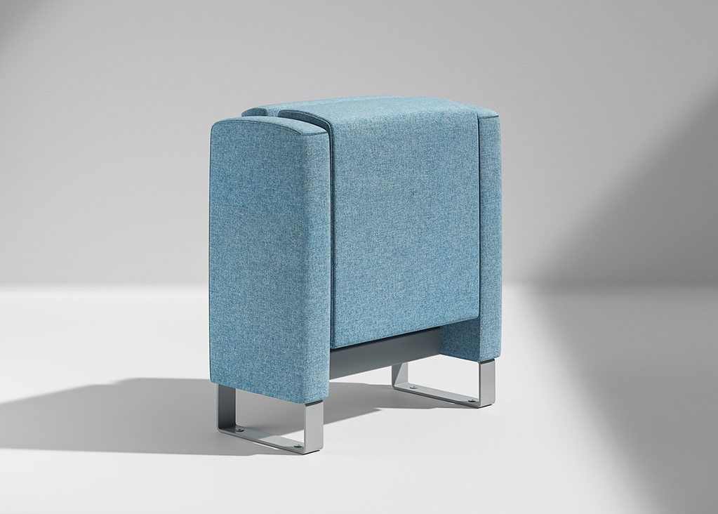 V9.Syncron is notable for its unique synchronization mechanism that connects the backrest and seat, resulting in an extremely compact footprint. When the chair is closed, the seat and backrest protrude from the outline of the sides, creating a geometric interplay of shapes and volumes.