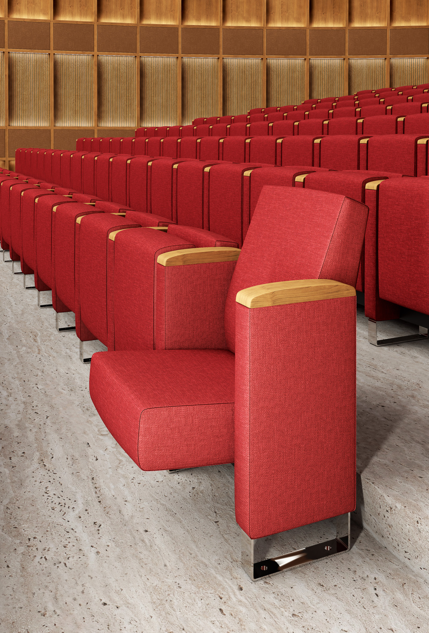 - Ergonomic practicality and maximum use of available space: with less than 30 cm in bulk, this is the only chair that can be equipped with a large foldaway anti-panic writing tablet, available for right- or left-handed users
