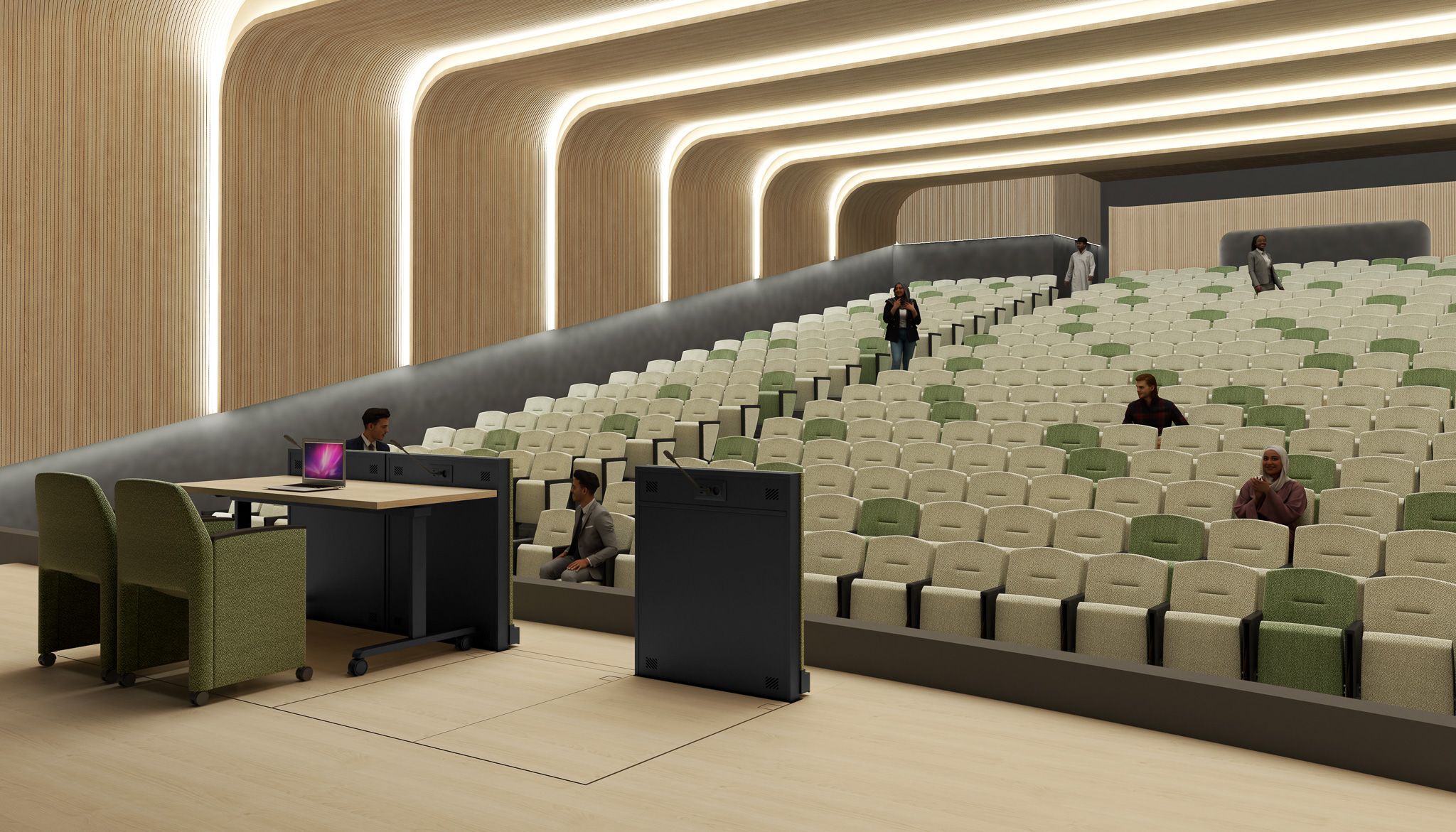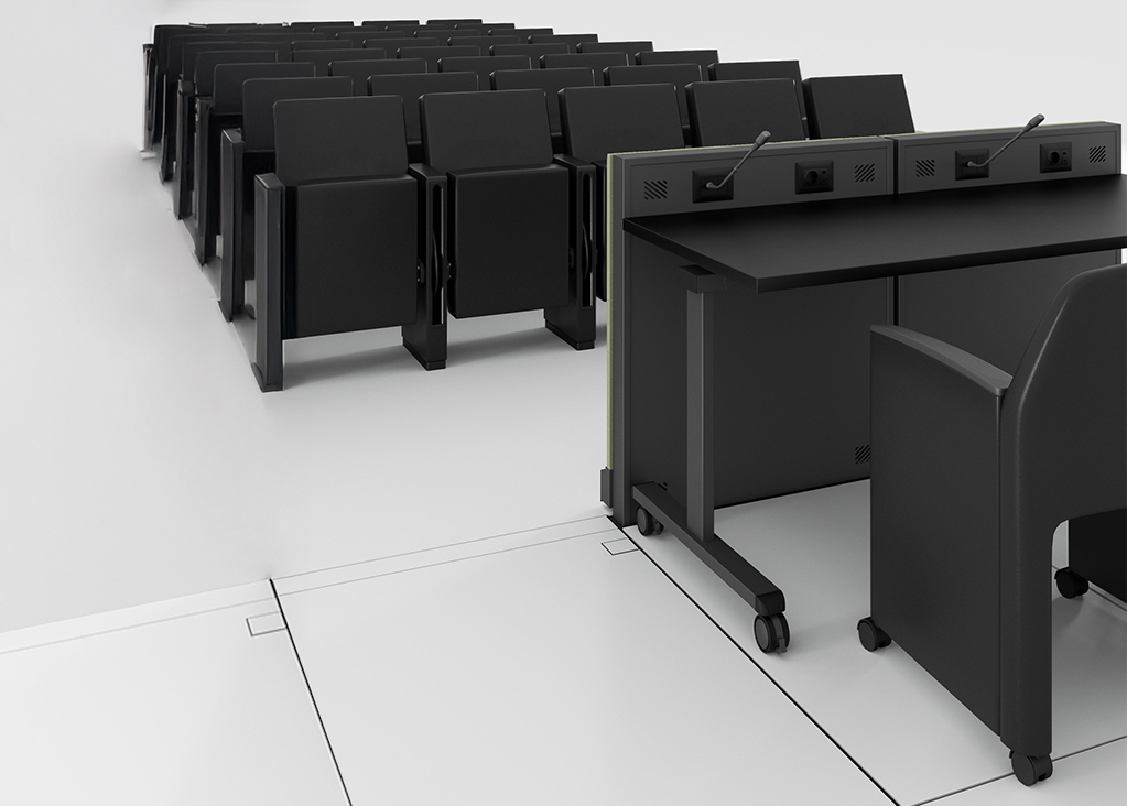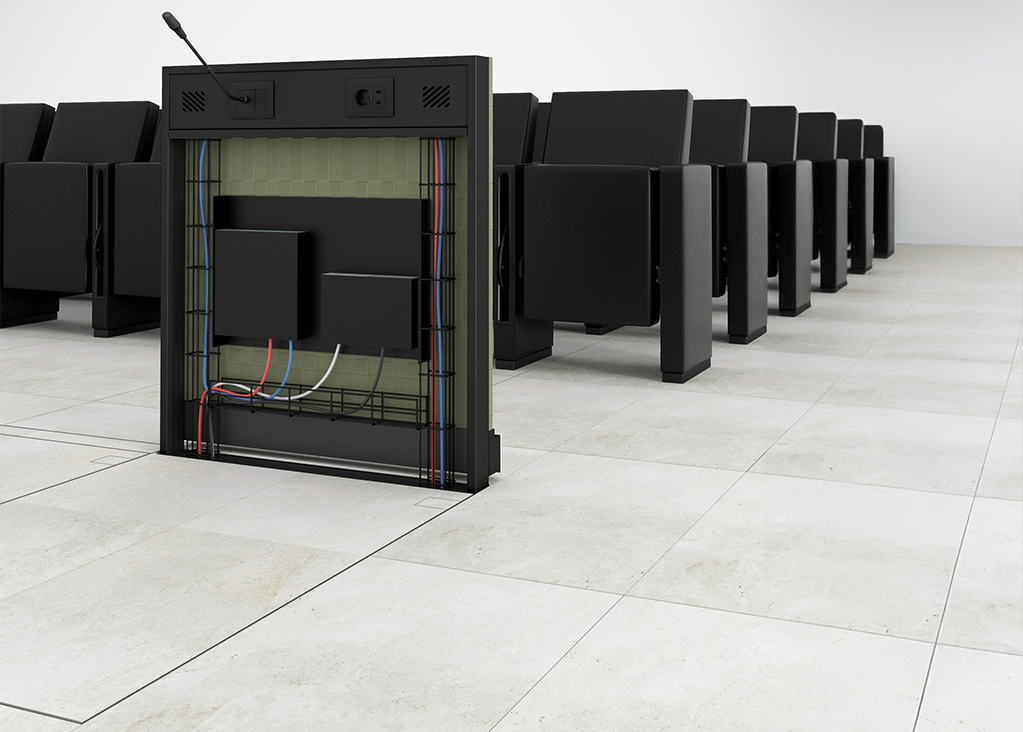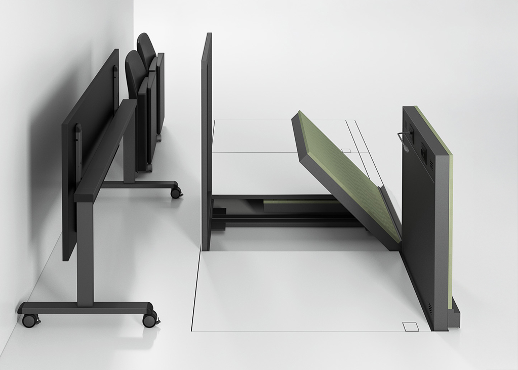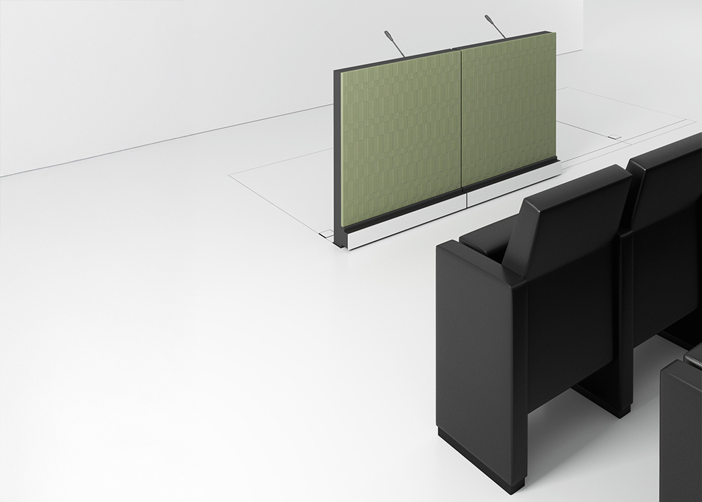 The system is ideal for multipurpose spaces with speaker areas and stages, and it folds down to just 20 cm in height.