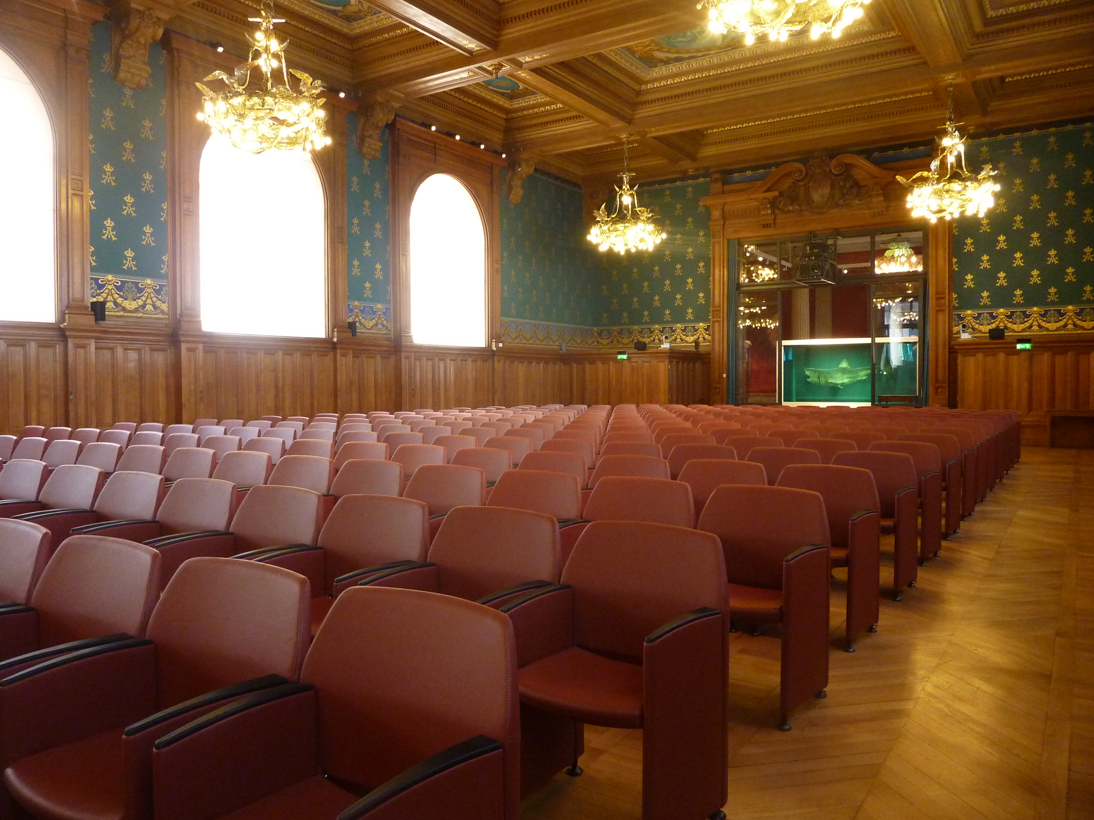 The room is furnished with 250 Papillon chairs with special scratch-resistant feet that protect the precious wooden floor. The distinctive features of the chairs, which are easily folded and transported in purpose-built trolleys, make the large hall multifunctional and perfect for other purposes.