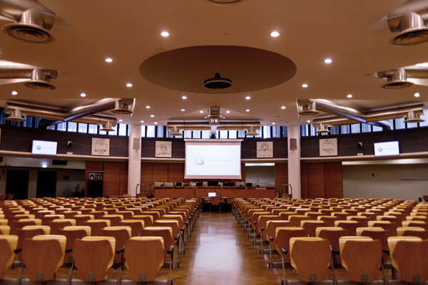 1.-2. Tecnologia installata nella sala Tincani dell’Università LUMSA di Roma. 3.-4. Tecnologia installata nell’Aula Magna della Facoltà di Lettere e Filosofia dell’Università Roma Tre.