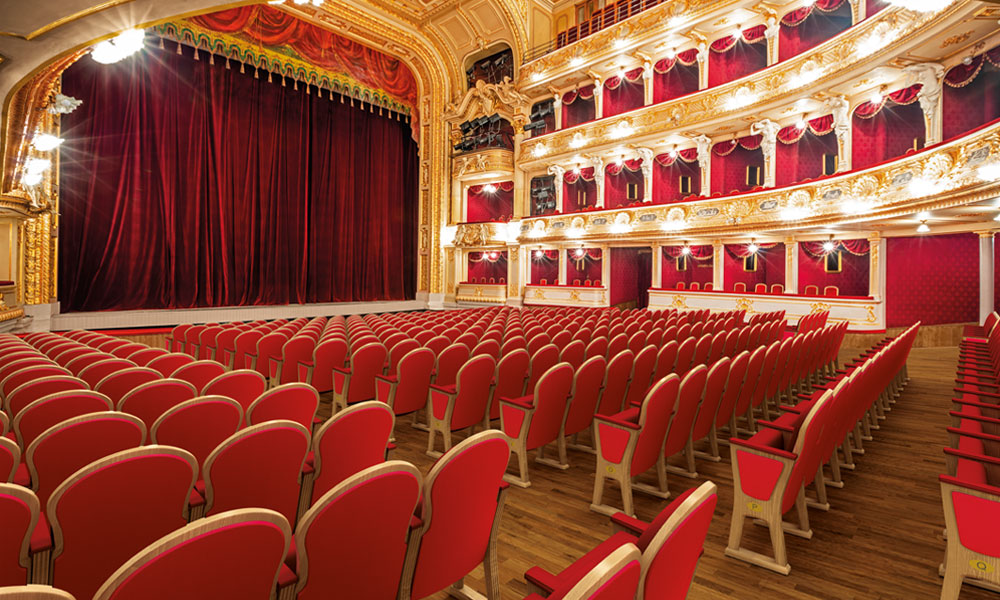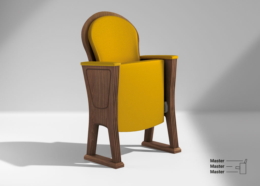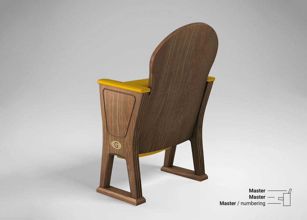 Estrada è una poltrona particolarmente adatta agli ambienti teatrali classici. I fianchi sono realizzati in legno massello con fresature estetiche di arricchimento. Lo schienale è completamente impiallacciato, compresi i bordi. Le varianti di sedile e schienale combinano in modo armonioso elementi lignei con quelli tappezzati.