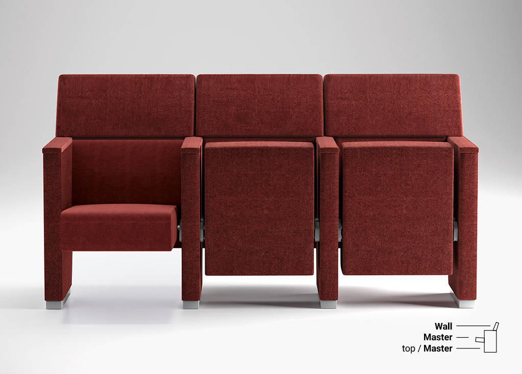 Time è complanare in ogni suo elemento. Forme e geometrie ben definite che la rendono unica e riconoscibile. Il fianco rastremato definisce la posizione e l’ingombro degli altri componenti che ne seguono l’andamento, apprezzabile specialmente a poltrone affiancate.