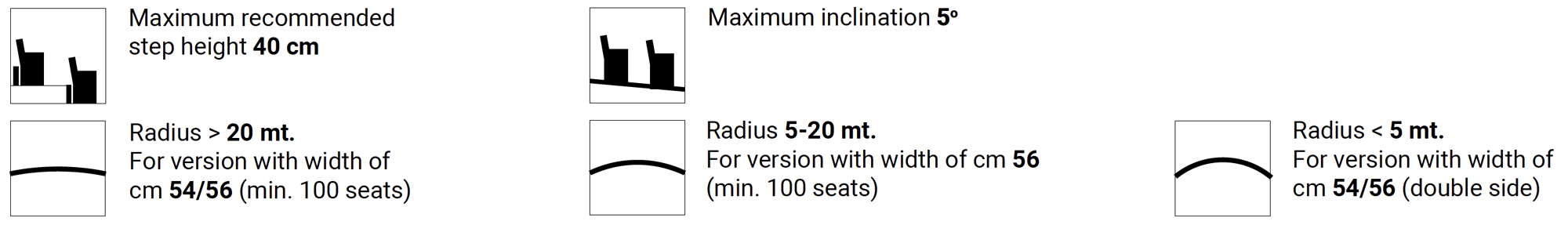 - Schienale e sedile a prova di manomissioni e facilmente rimovibili, senza uso di utensili dal personale di manutenzione